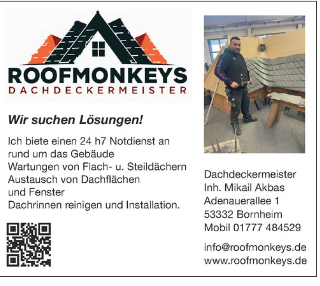 Wir sind Ihr zuverlässiger Partner rund ums Dach in Köln-Bonn. Mit unserer langjährigen Erfahrung und unserem 24/7 Notdienst stehen wir Ihnen jederzeit zur Verfügung.